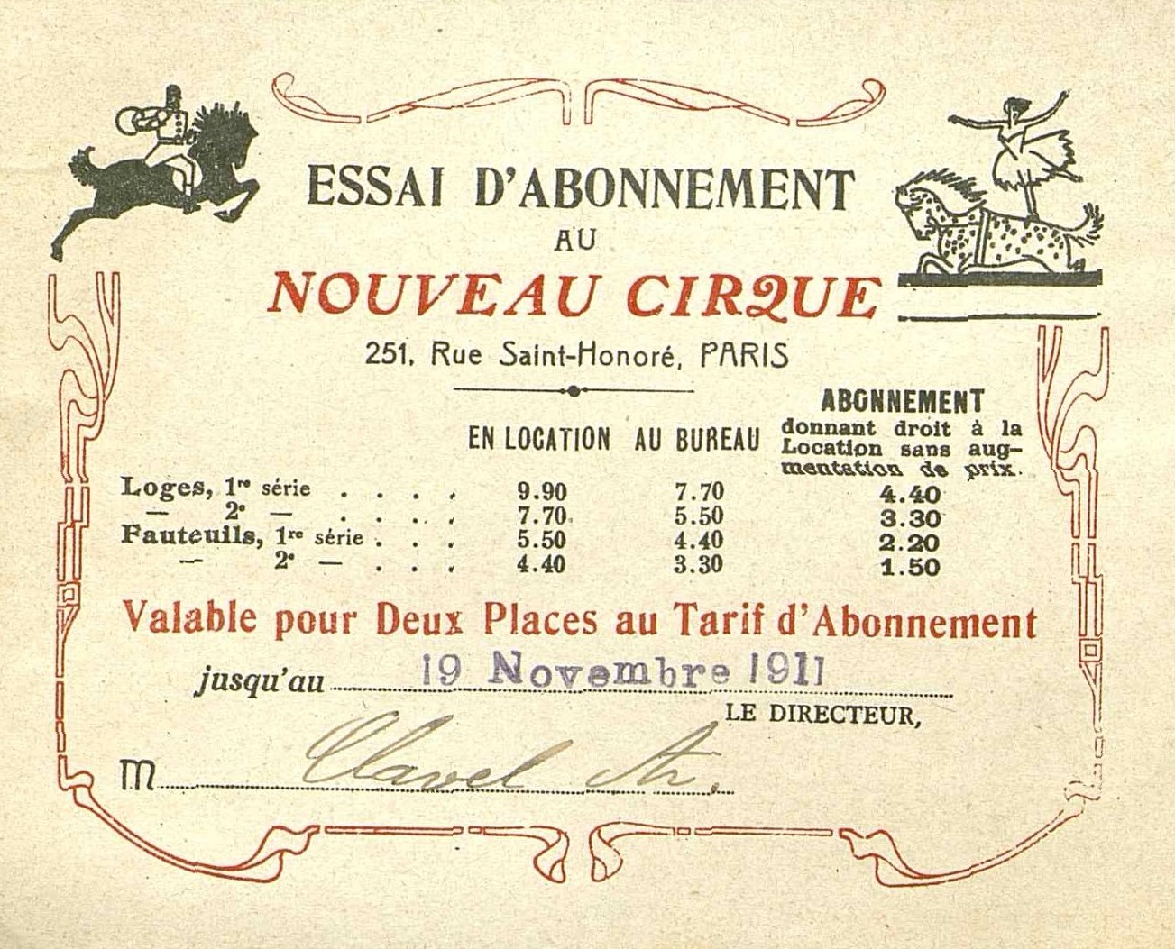 Essai d'abonnement au Nouveau Cirque.