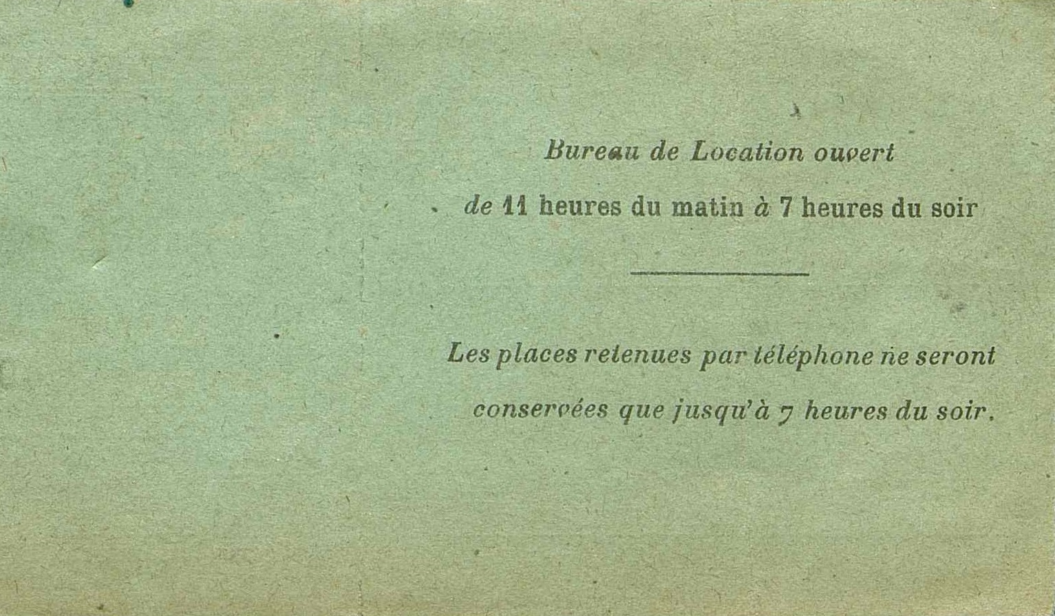 Contremarque du billet d'entré numéroté (n° 163) pour un fauteuil d'orchestre au Théâtre du Vaudeville. Ce ticket est daté et porte le timbre fiscal sur la taxe du droit des pauvres.