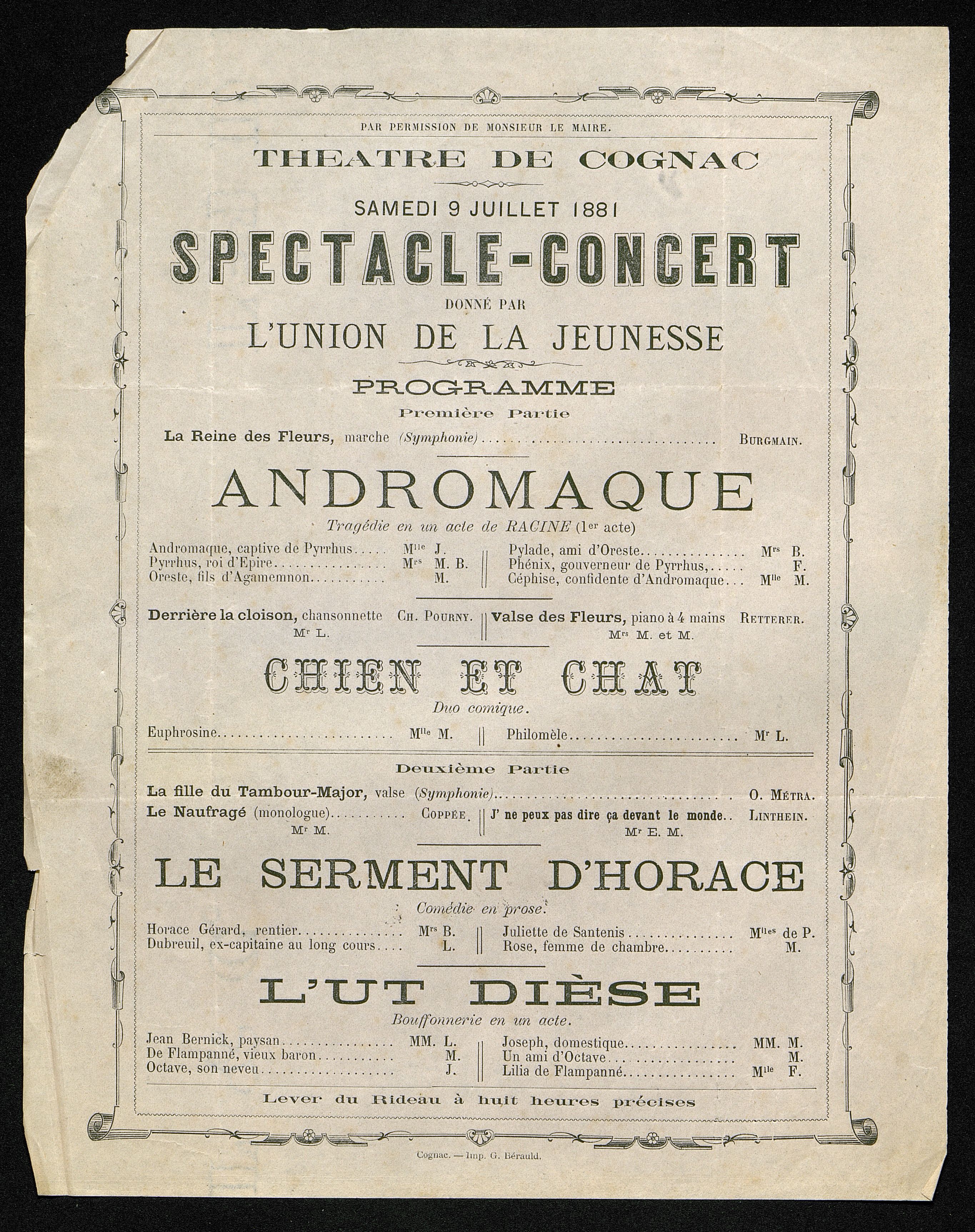 Programme : Andromaque. Chien et chat. Le Serment d'Horace. Ut Dièse.