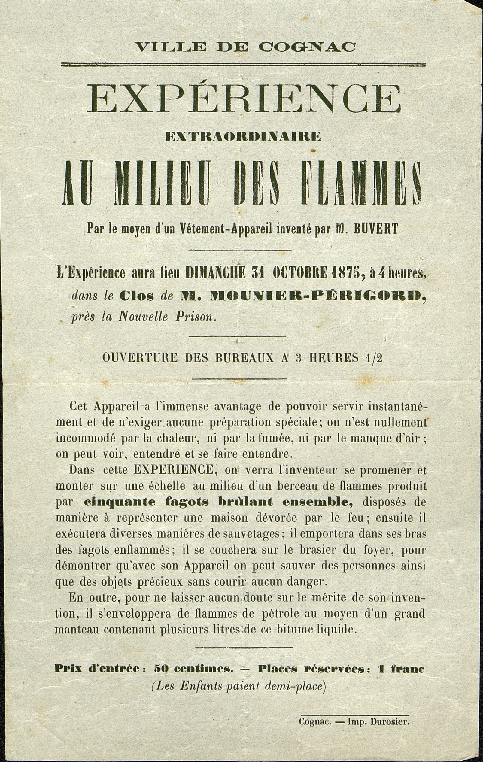 - l'Expérience aura lieu Dimanche 31 octobre 1875 à 4 heures dans le clos de M. Mounier-Périgord prés la nouvelle prison.