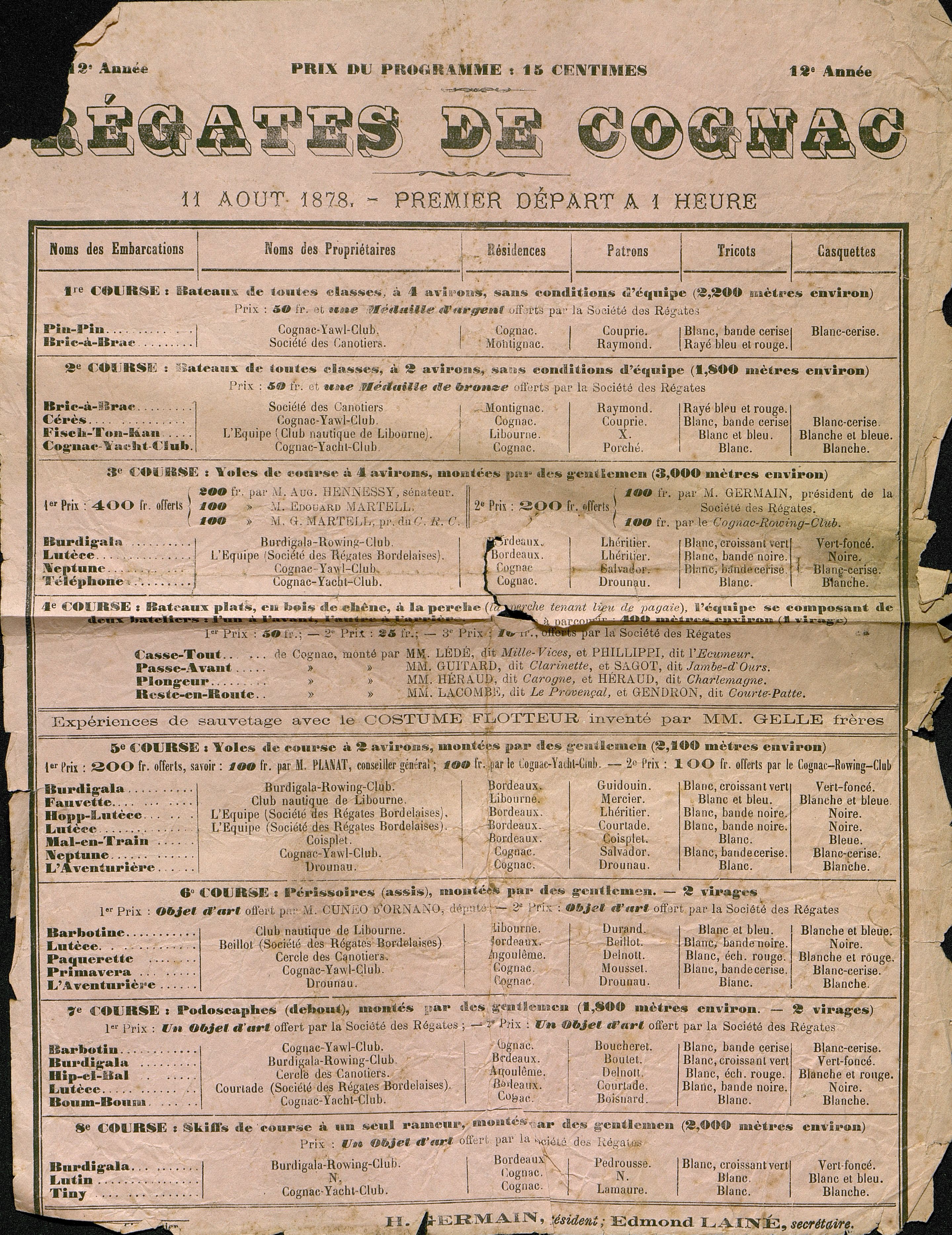 Programme . 12e années. Yole de course. Périssoire.Podoscaphes. Skiffs.