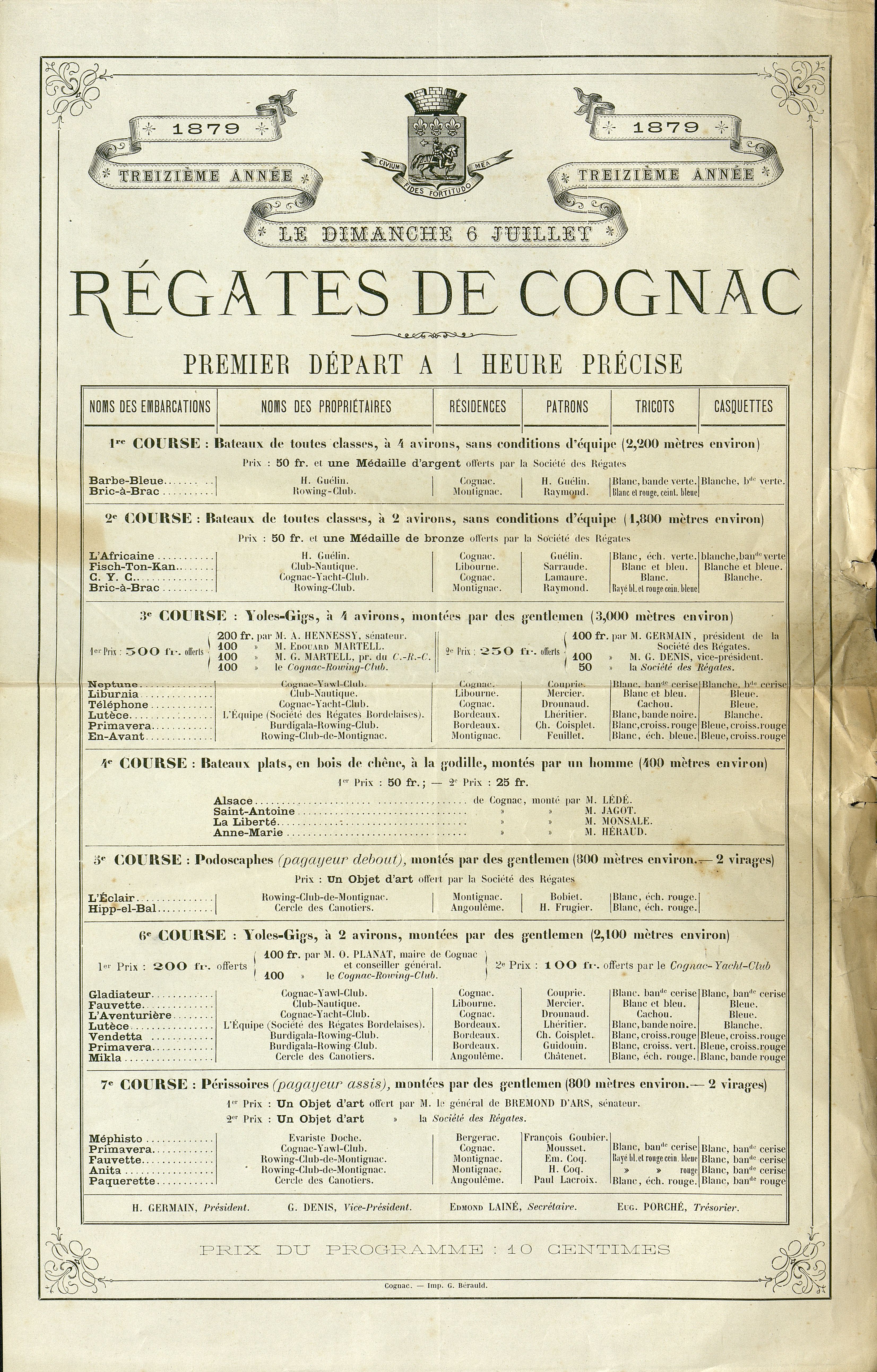 Programme . Yoles-Gigs. Perissoires. 13ème année.