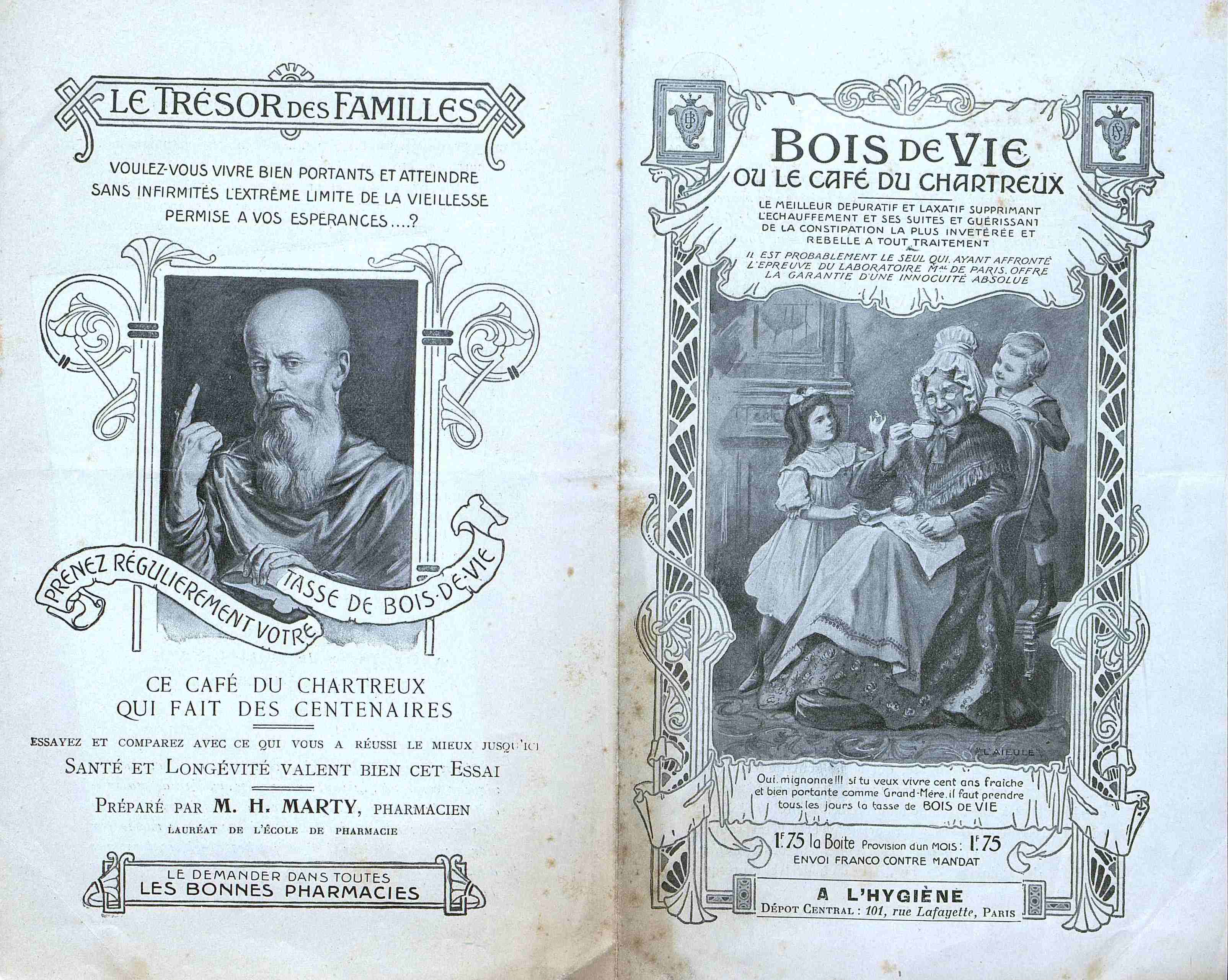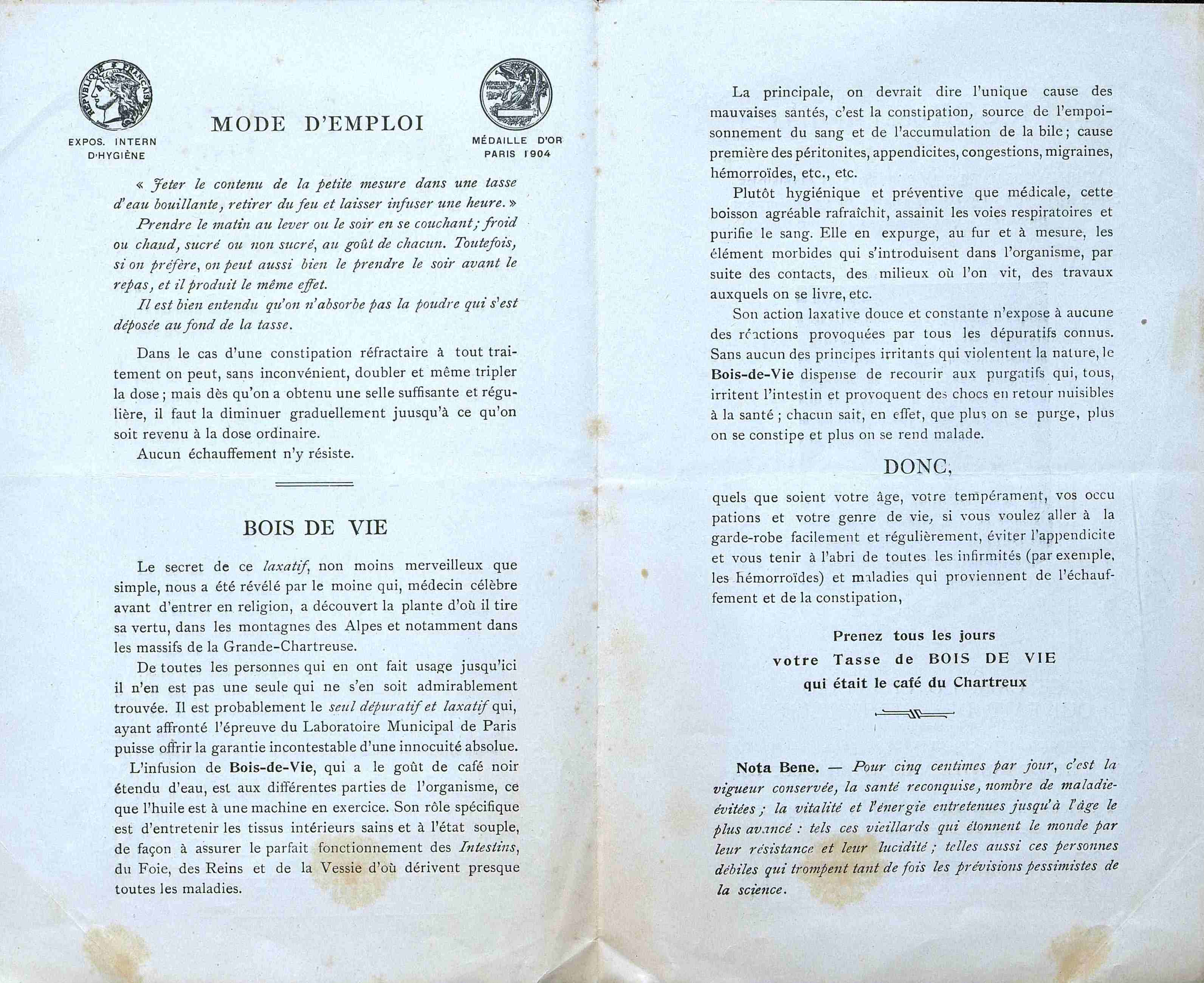 - Document illustré proposant un dépuratif en utilisant le nom des Chartreux, son mode d'emploi et ses mérites hygiéniques.