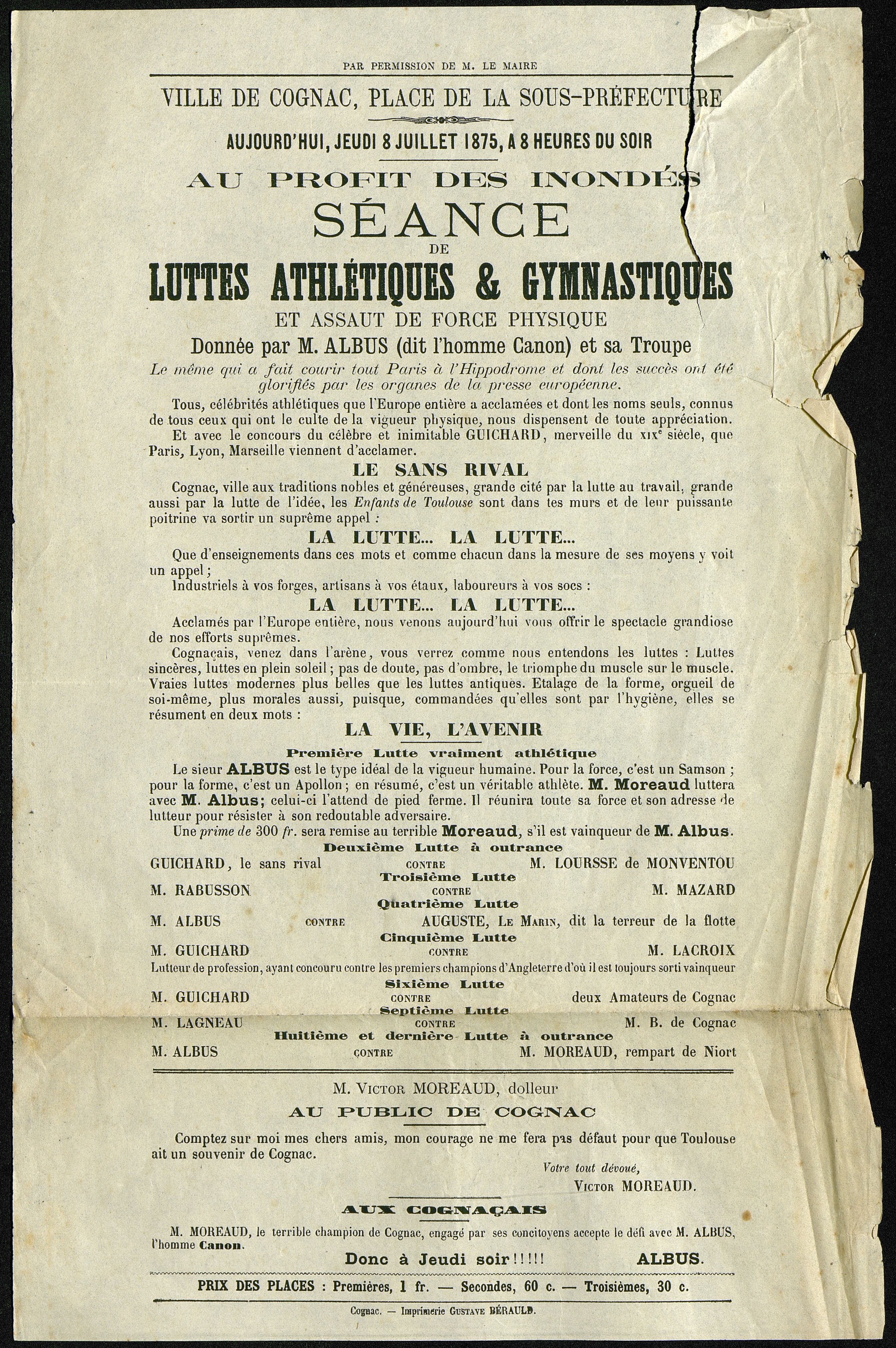 Séance luttes athlétiques et gymnastiques au profit des inondés
