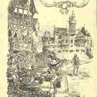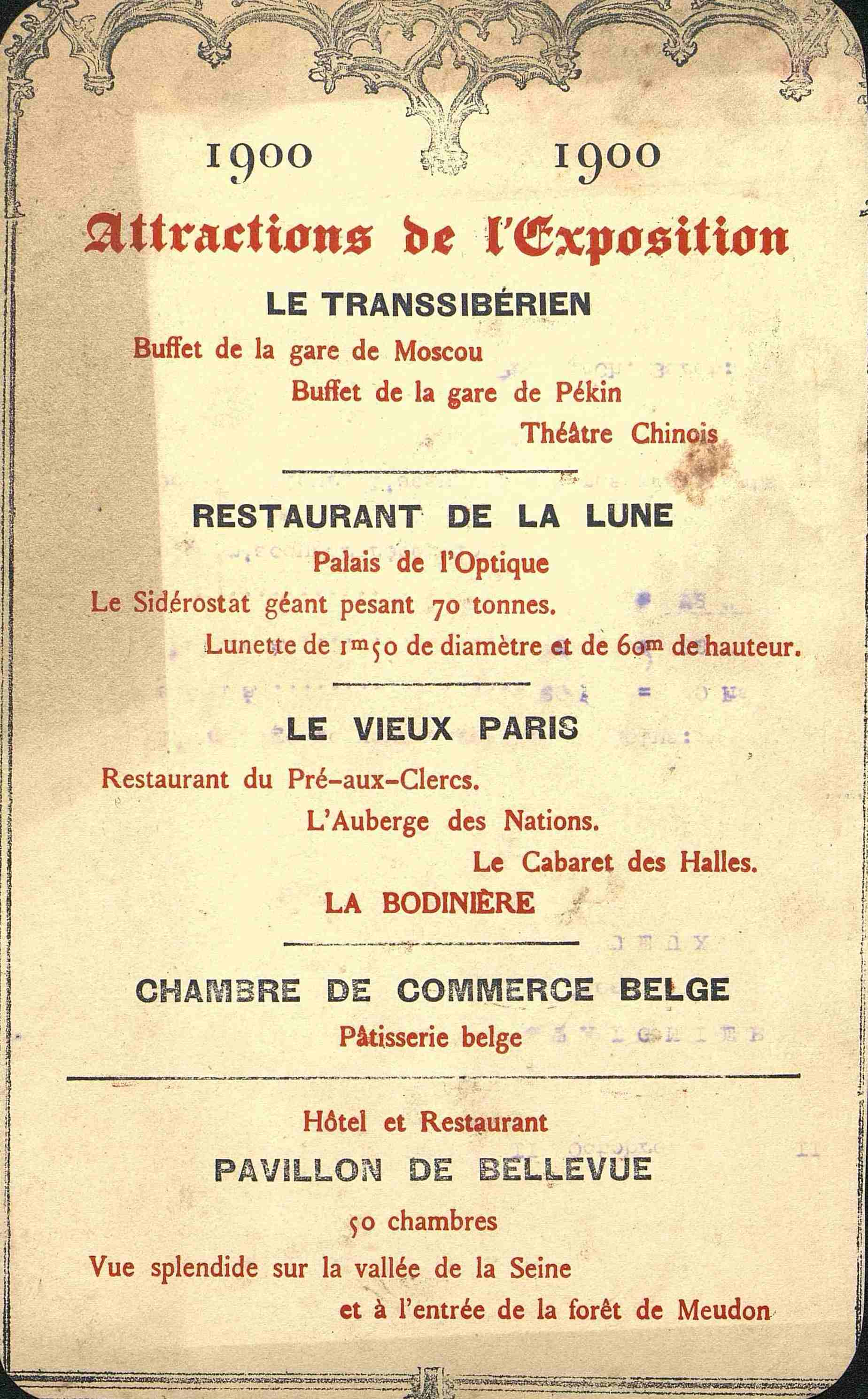 Vieux Paris. Exposition Universelle de 1900. Au dos les contributeurs de l'exposition du Vieux Paris au sein de l'Exposition Universelle de 1900. Probablement un extrait de magazine.