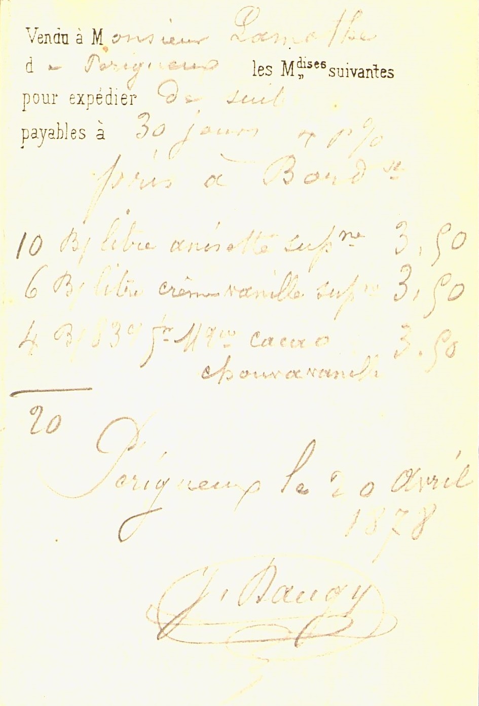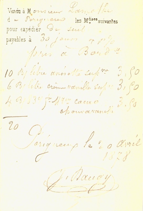 Tract pour Marie Brizard et Roger. Notes manuscrites au verso.