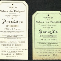 Deux tickets d'entrée de première et de seconde pour le Théâtre de Nature du Périgord avec coupon de contrôle.