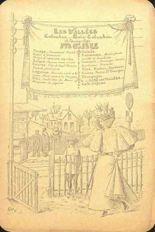 Vins : Madère, Bordeaux, Graves, Nuits St-Georges, Champagne, Café, Liqueurs.