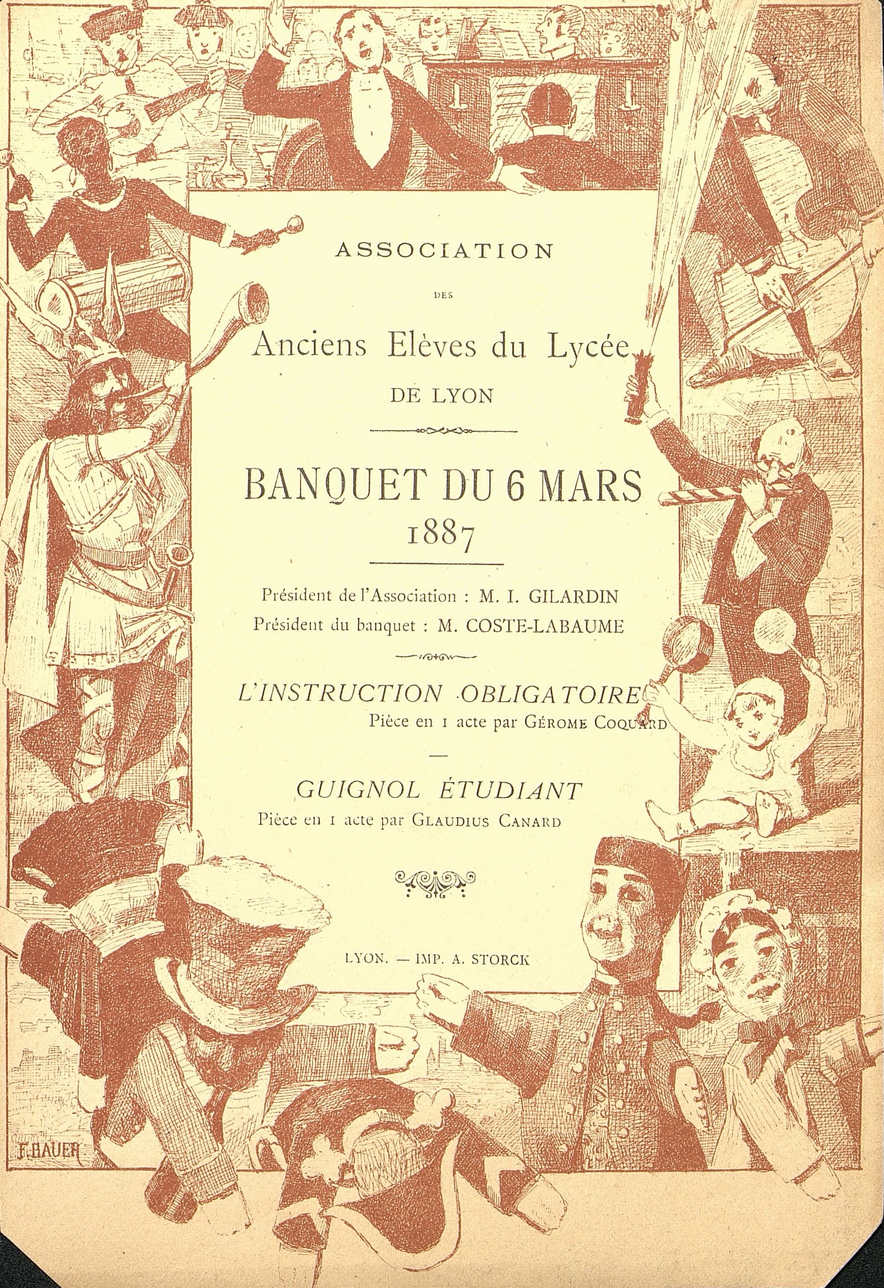 Banquet du 6 mars 1887 de Association des Anciens Elèves du Lycée de Lyon, avec ses invités et ses animations.