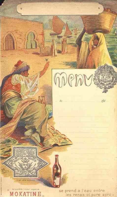Menu vierge publicitaire : Mokatine. Illustration orientale.