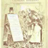 Huîtres de Marennes et Cancales ; Consommé chaud, œufs pochés froids ; Hors d’œuvre ; Selle de Présalé à la Roussotte ; Cailles sous la cendre ; Homard Américaine ; Asperges en branches ; Glace Victoria pralinée ; Brioche, Baba, fraise.