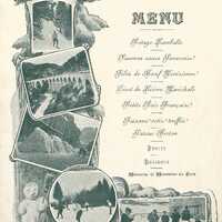 Plats servis : Potage Lamballe. Saumon sauce Genevoise. Filet de Bœuf Mozérienne. Civet de Lièvre Maréchale. Petits Pois Française. Faisans rôti truffé. Plateau Breton. Fruits. Desserts.