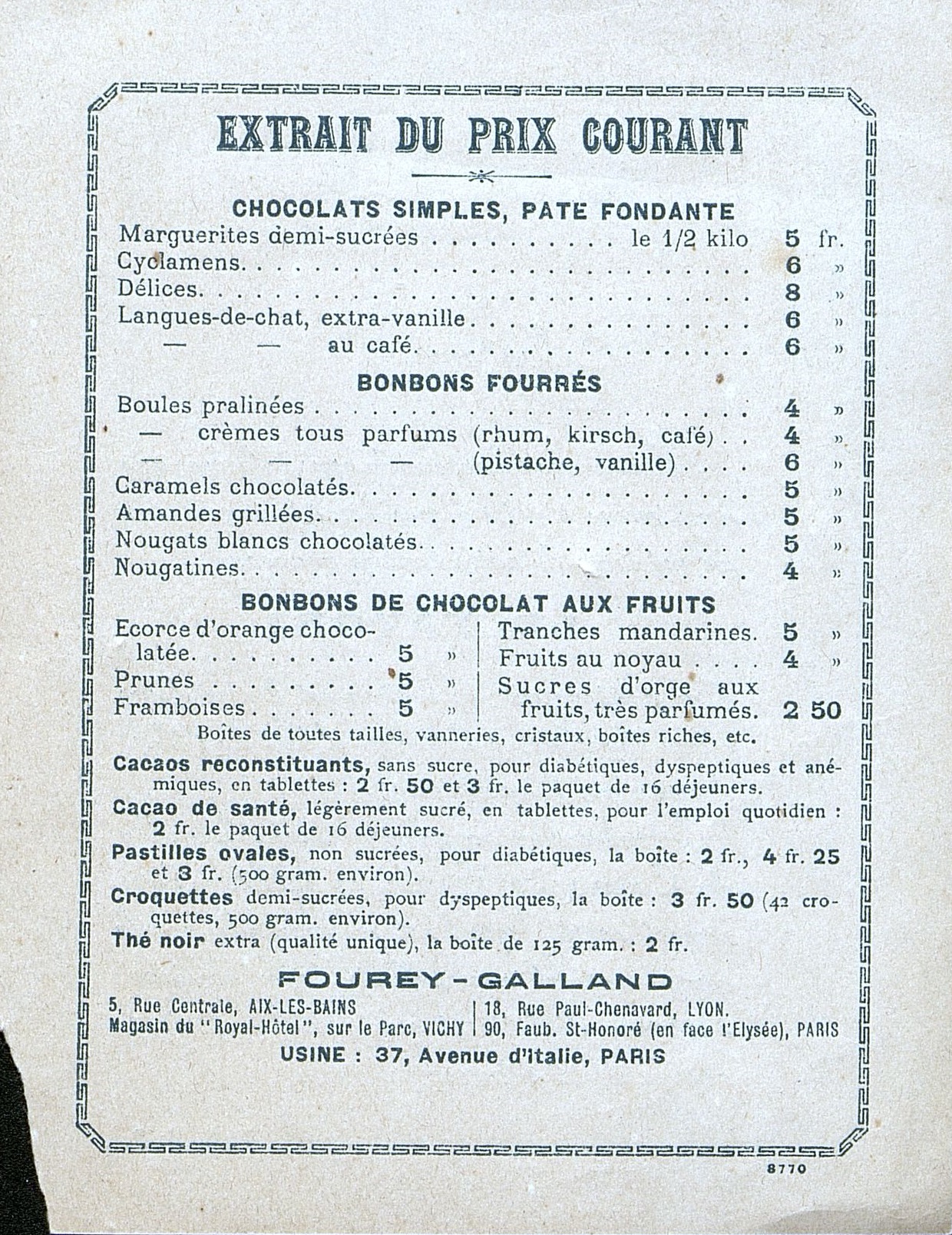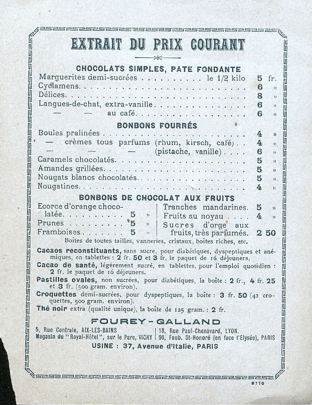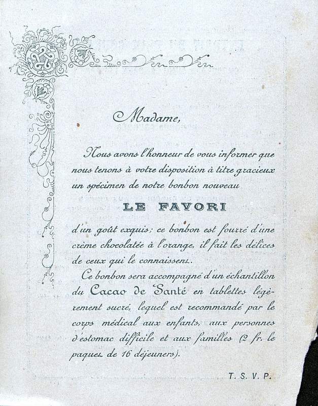 Tract publicitaire pour un entreprise de confiserie. Au dos les tarifs des produits.