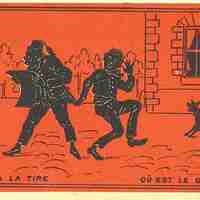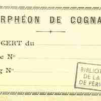 Billet de concert vierge avec au dos une représentation humoristique imagée.