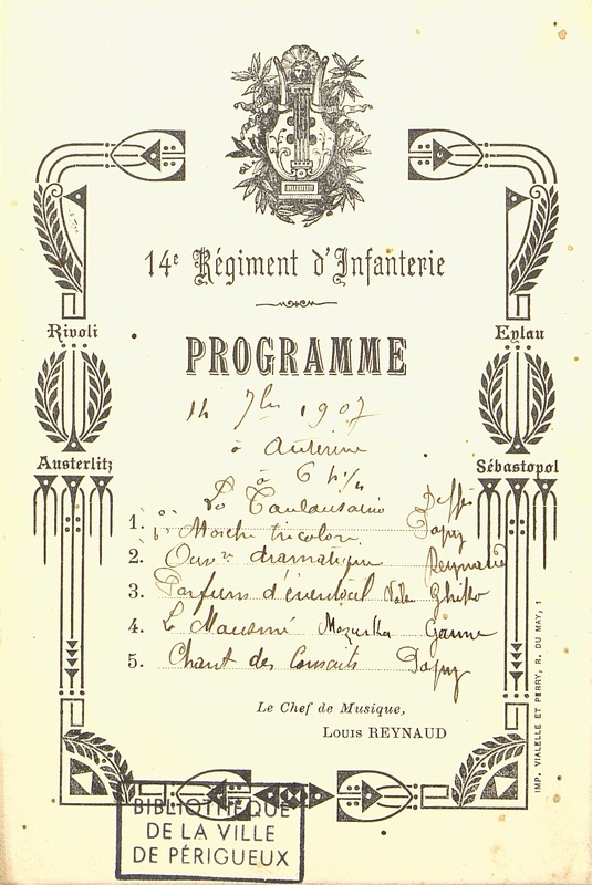 Programme musical du 14e Régiment d'Infanterie en date du 14 septembre 1907.