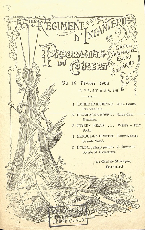 Programme du concert du 16 février 1908 donné par le 55e Régiment d'Infanterie.