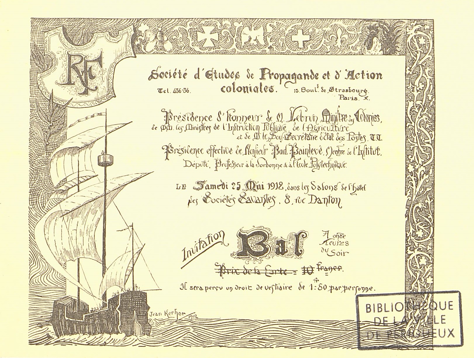 Invitation à un bal Parisien avec présence de personnalités politiques.