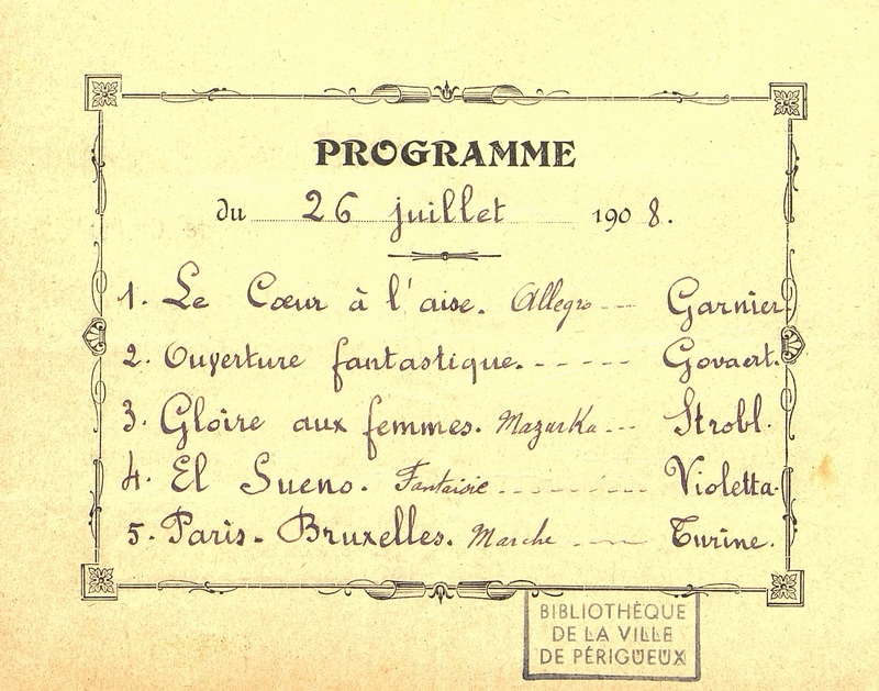 Programme de concert de la Société Musicale : l'Avenir Mussidanais.