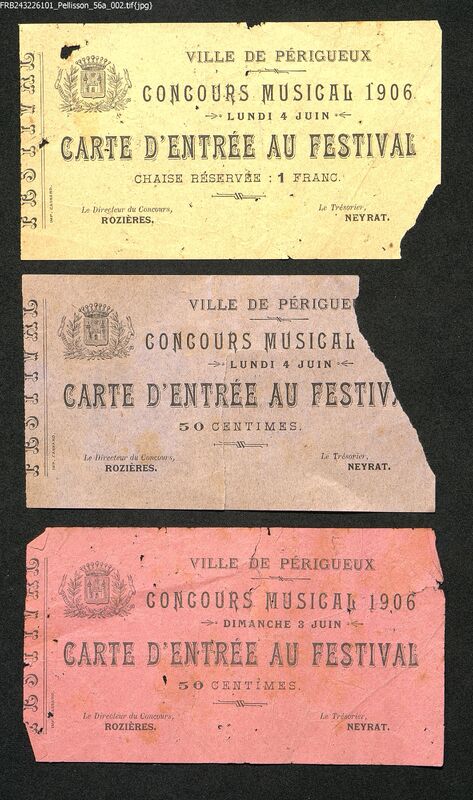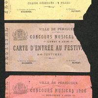 3 tickets d'entrée au Concours musical de 1906.