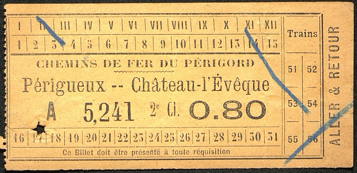 Ticket aller-retour : Périgueux-Château-L'Evêque.