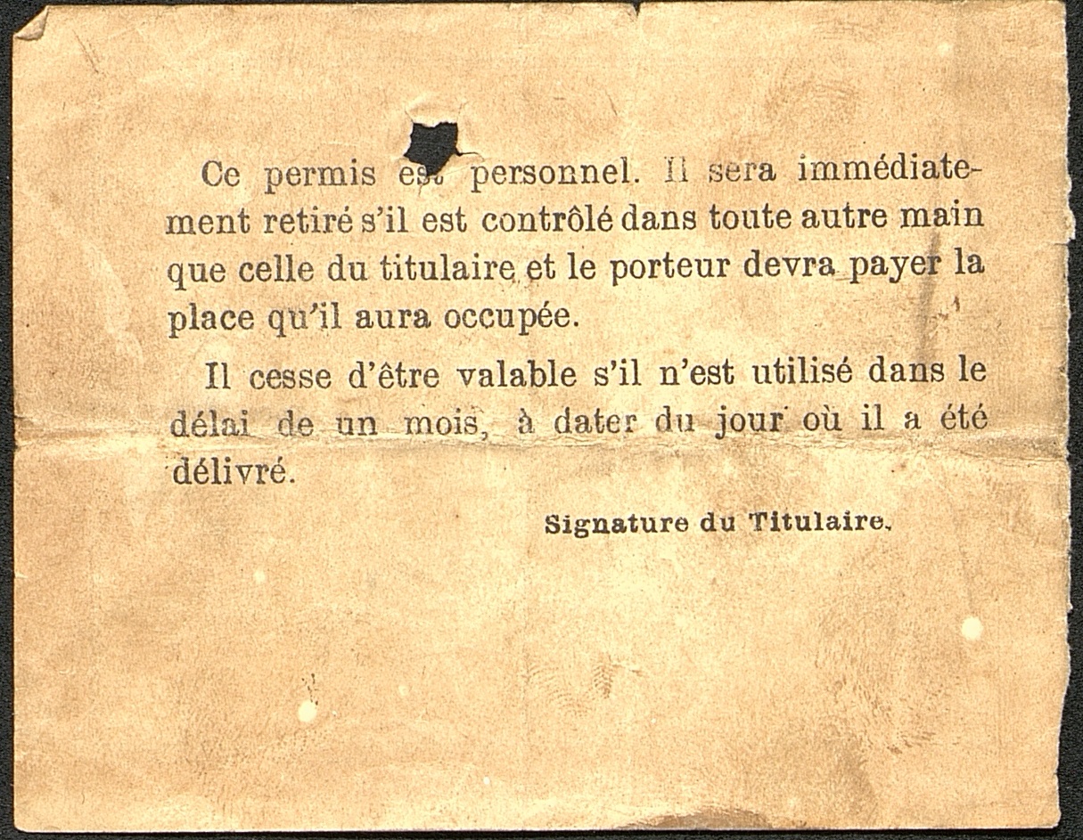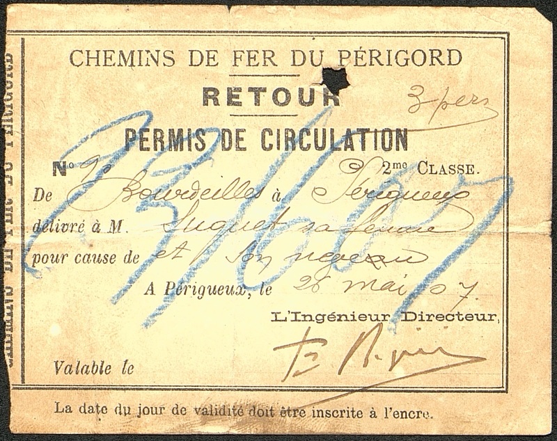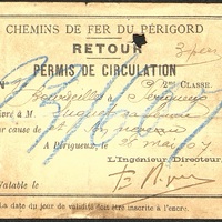 Permis de circulation. Retour. Bourdeilles-Périgueux.