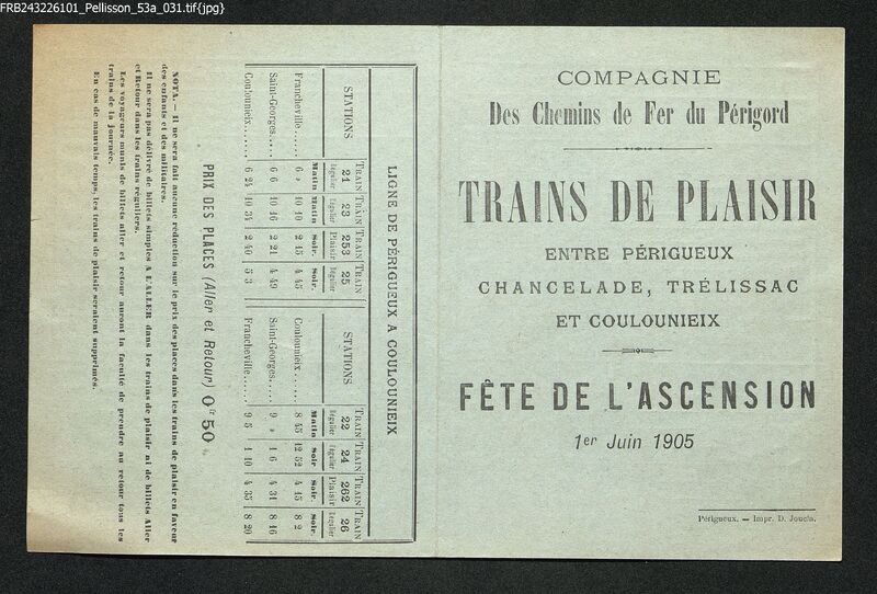 Chemins de fer du Périgord. Trains de plaisir. Fête de l'Ascension.