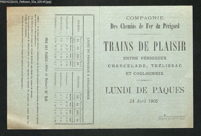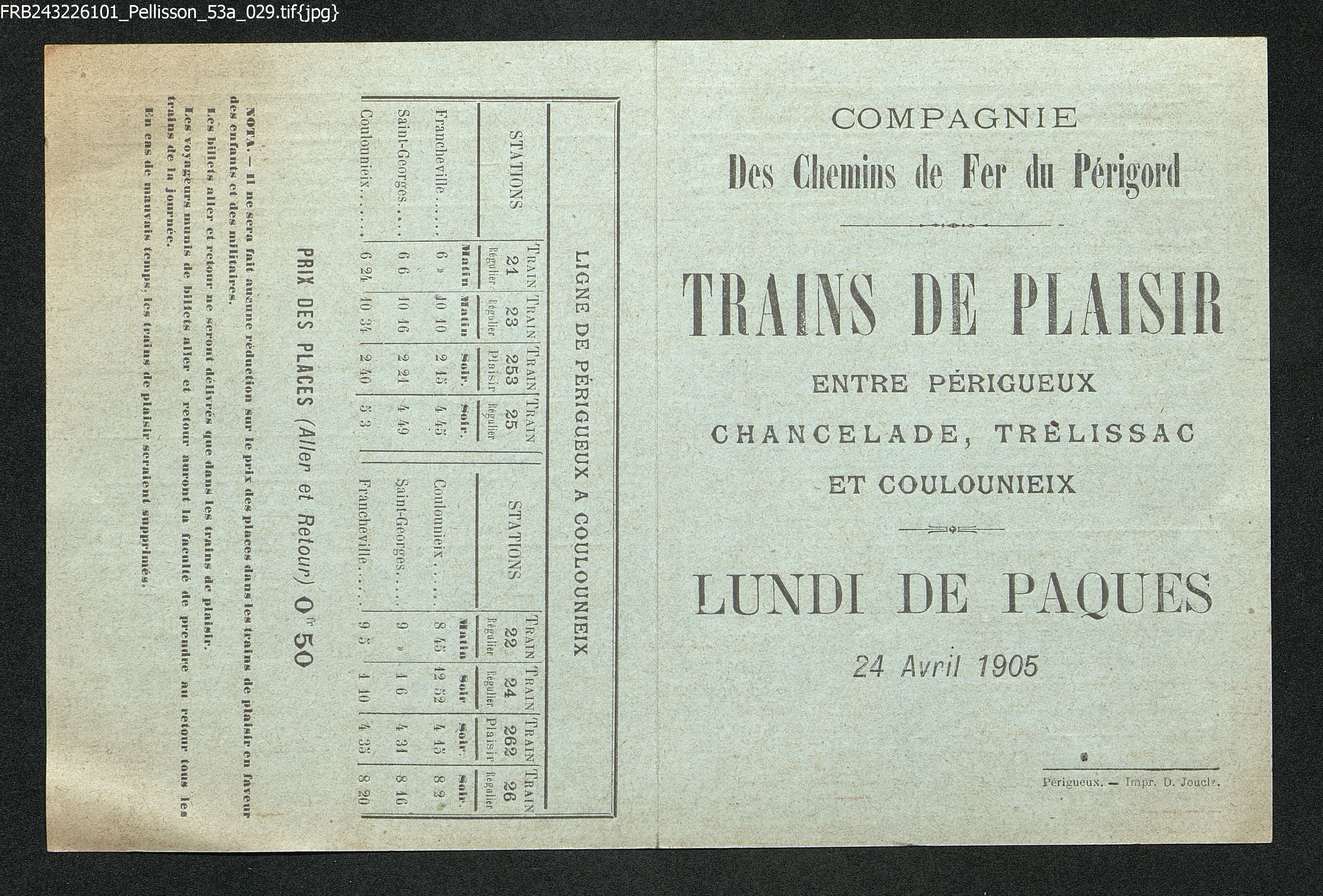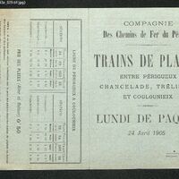 Chemins de fer du Périgord. Trains de plaisir. Lundi de Pâques.