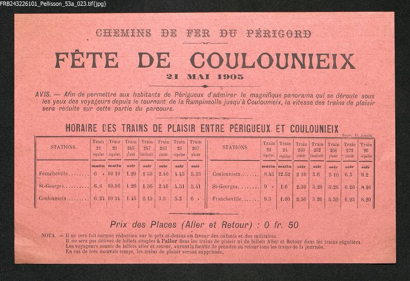 Chemins de fer du Périgord. Trains de plaisir. Lundi de Pâques.