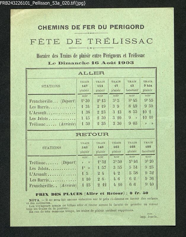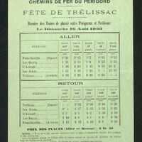 Chemins de fer du Périgord. Trains de plaisir.Fête de Trélissac.