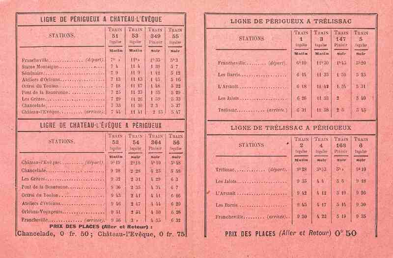 - Chemins de fer du Périgord. Trains de plaisir. Fête de l'Ascension. Tarifs et horaires.