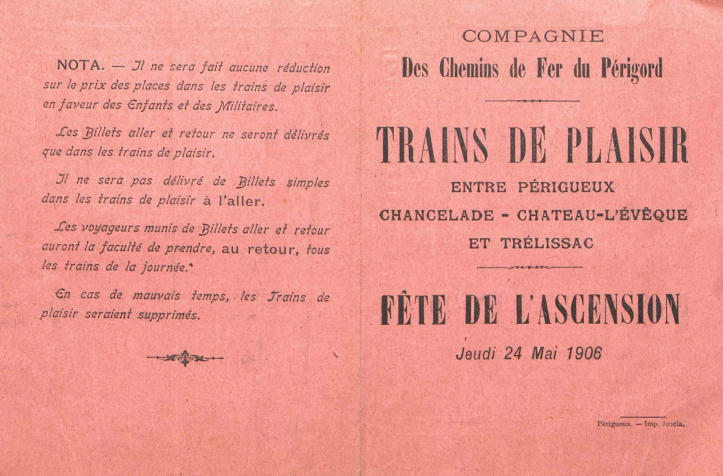 - Chemins de fer du Périgord. Trains de plaisir. Fête de l'Ascension.