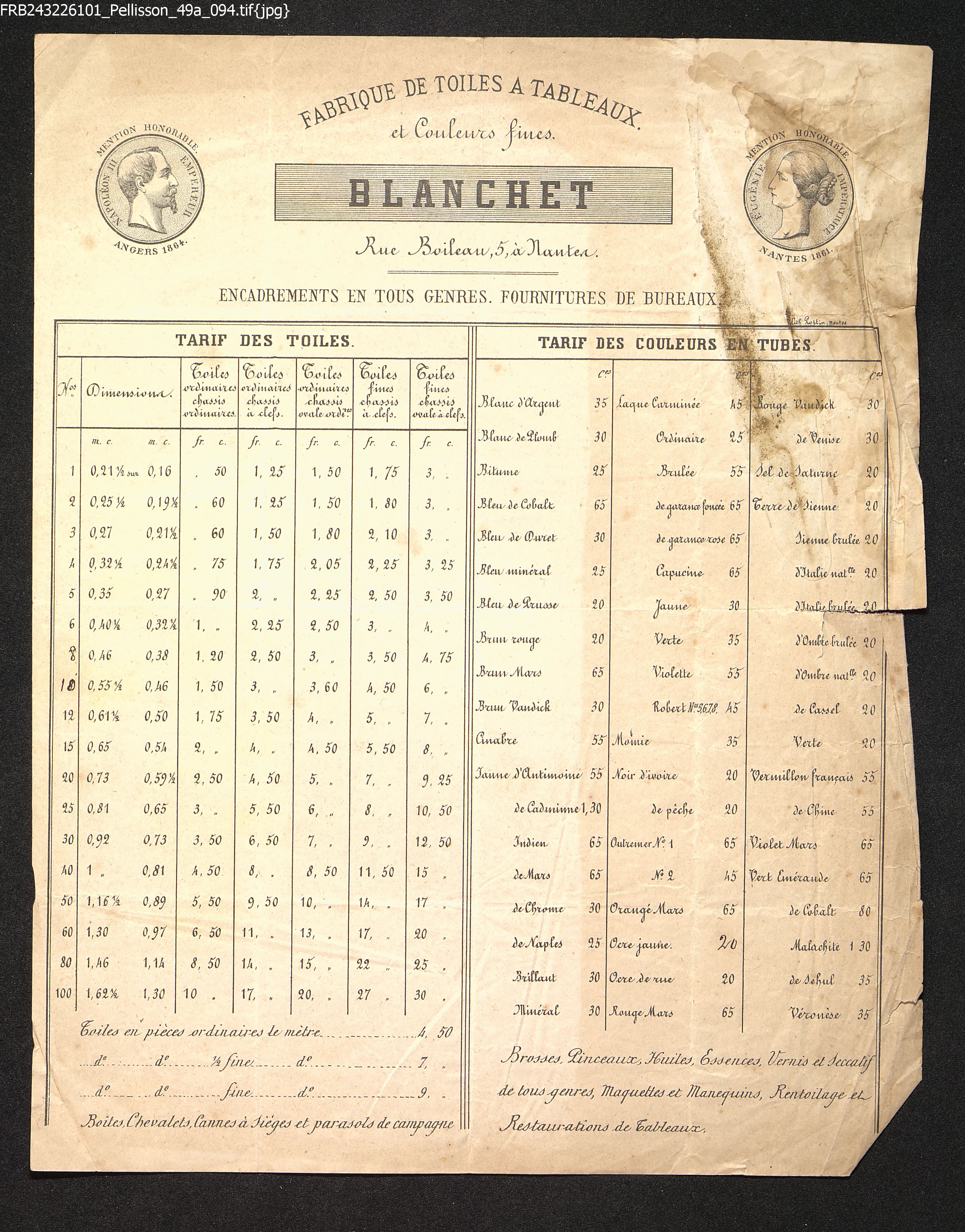 - Fabrique de toiles à tableaux et couleurs fines
