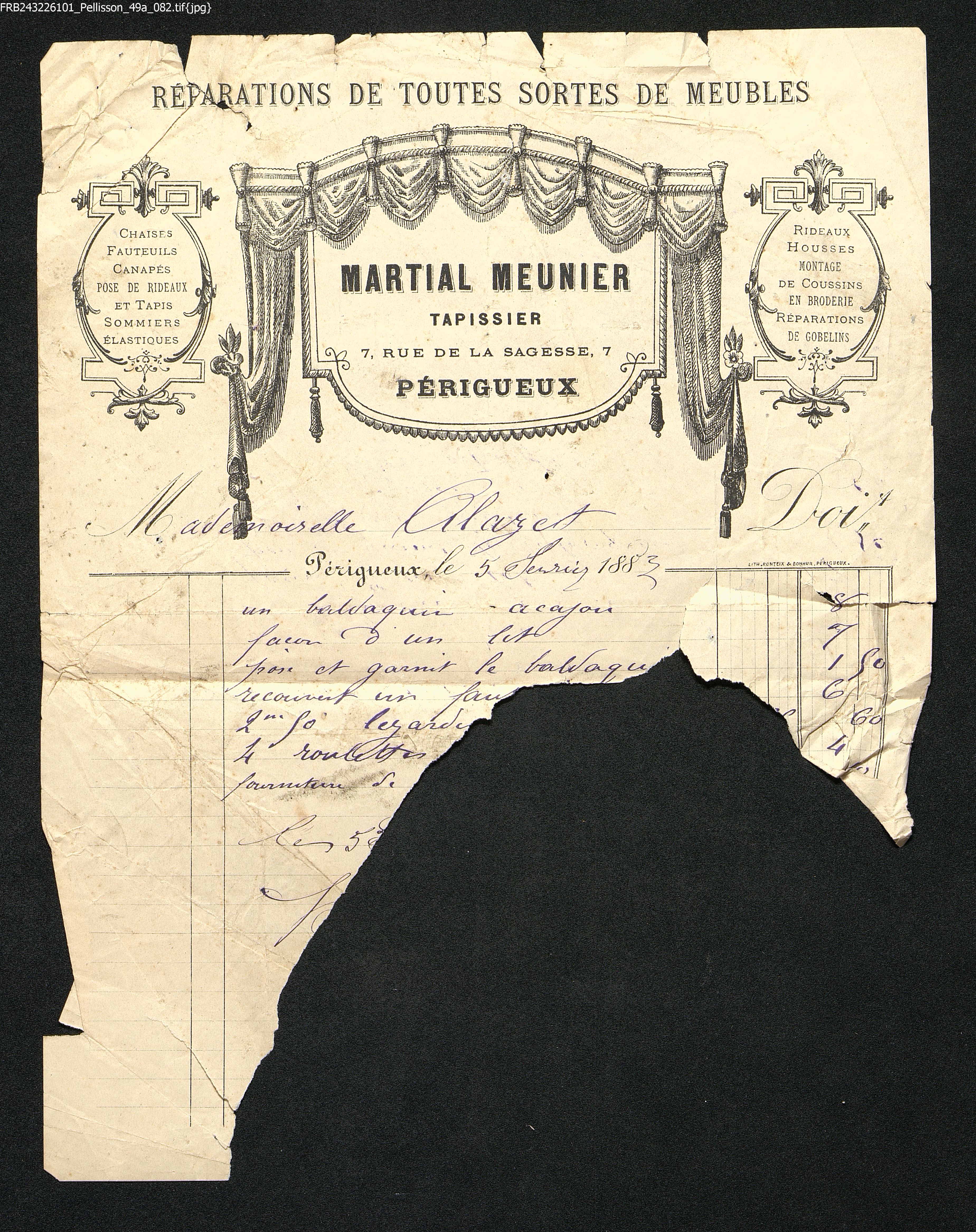Martial Meunier, tapissier.
