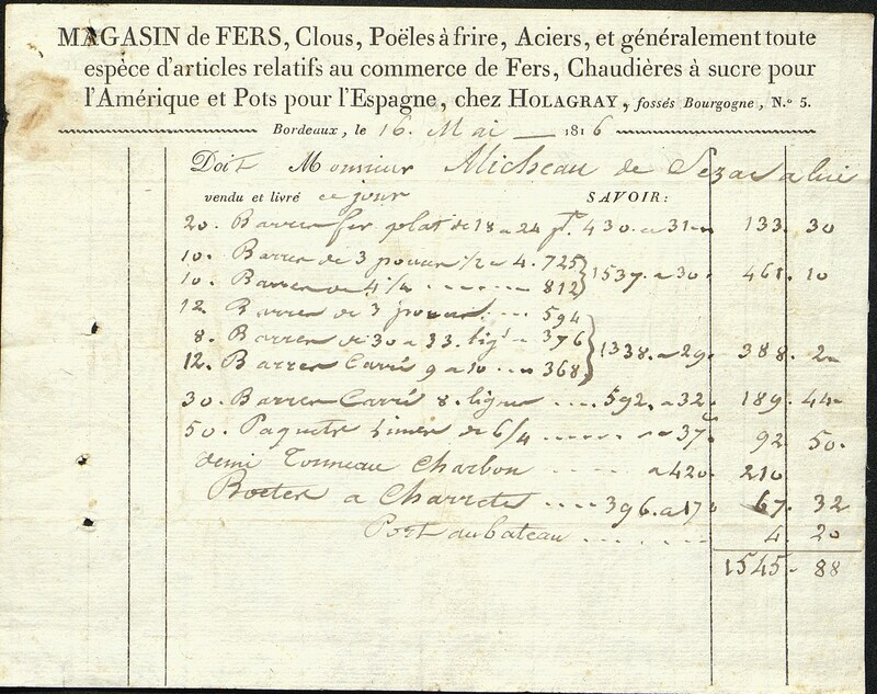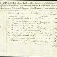 Facture imprimée avec mentions manuscrites. Magasin de fer, clous, poêles à frire, acier…