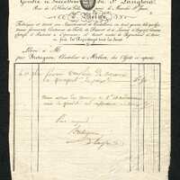 Facture à en-tête du coutelier Bretagnon à Melun. Document illustré à support imprimé, rempli en écriture manuscritet.