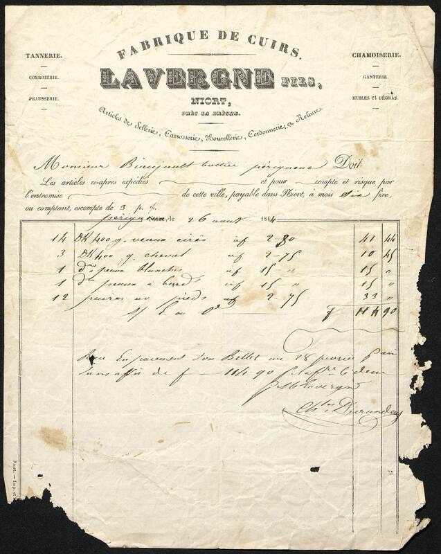 Lettre-facture de Lavergne fils, Tannerie, chamoiserie à Niort.