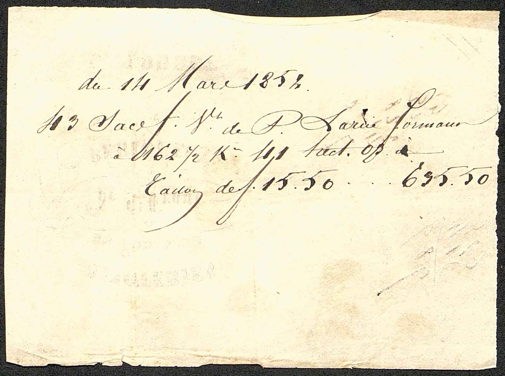Facture manuscrite sur imprimé en mauvais état des Minoteries du Rousseau et St-Front.