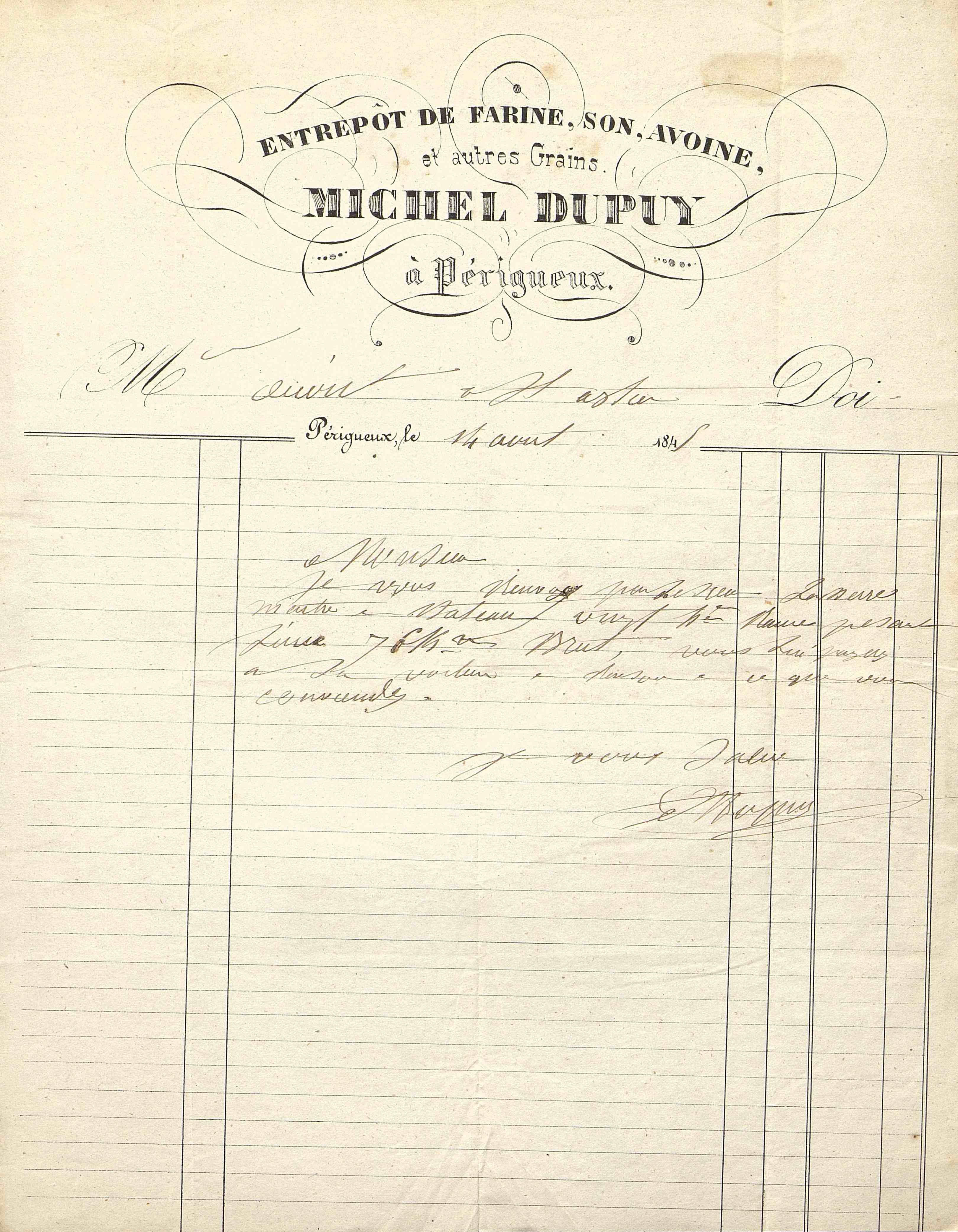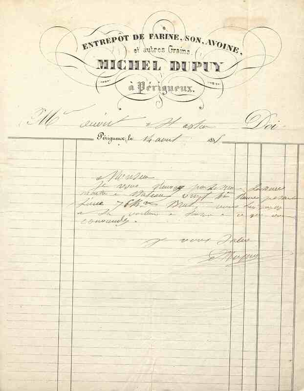 Entrepôt de farine, son, avoine et autres grains, Michel Dupuy à Périgueux.