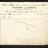 Facture de la Maison Vassou et Simon, verriers et Fabrique de verre.