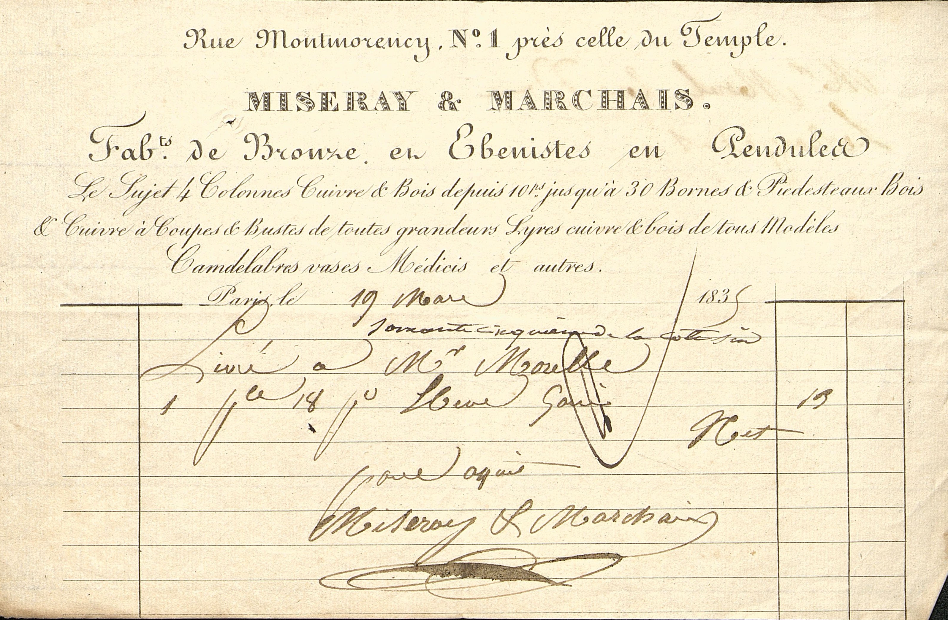 Miseray et Marchais, Fabricants de bronze, en ébénistes en pendules.