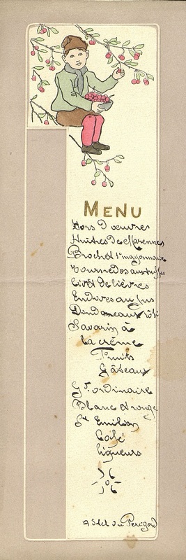 Menu de l'Hôtel du Périgord avec le jeune garçon