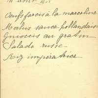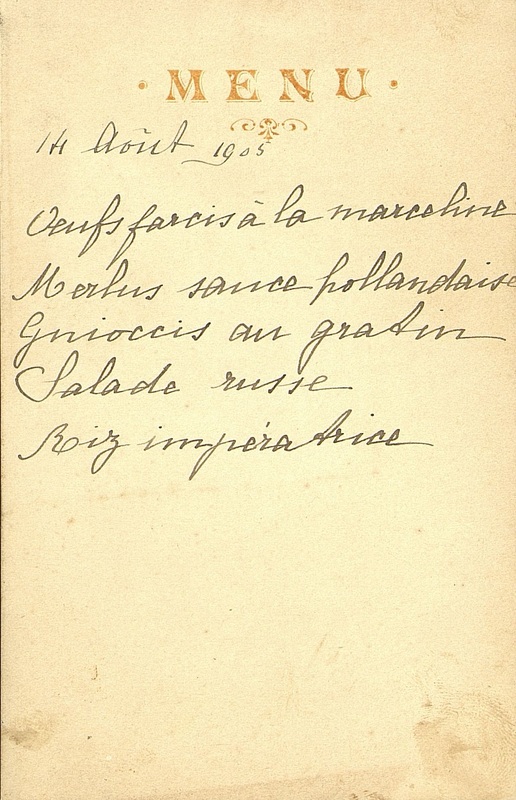 Menu du 14 août 1905