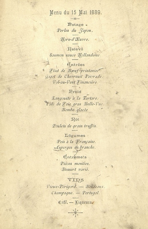 Menu du 15 mai 1889