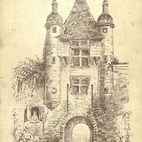 Menu illustré avec la porte d'entrée du Château d'Excideuil.