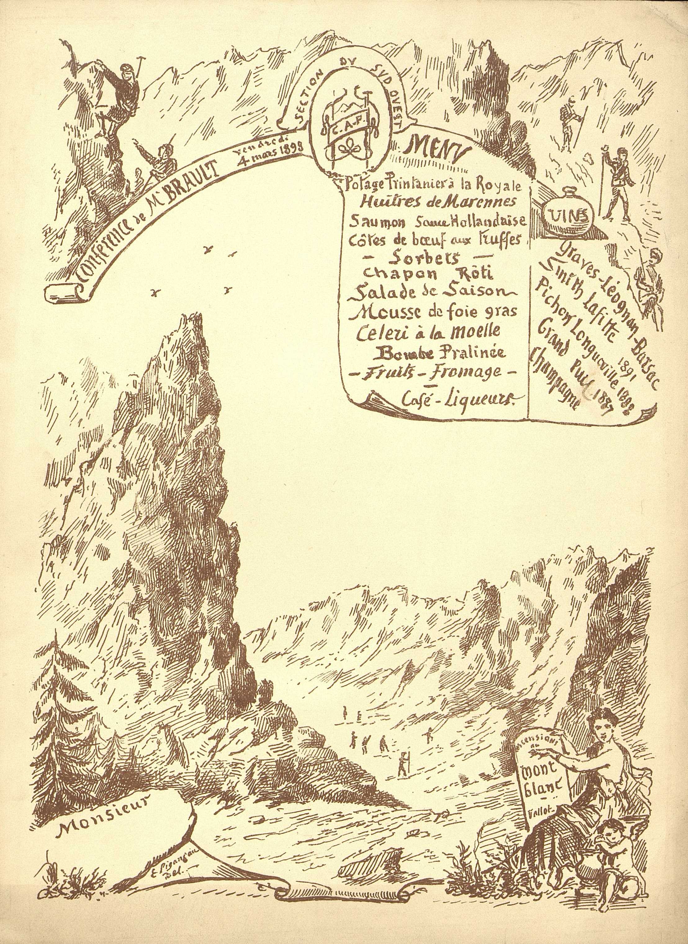 Vins : Graves, Léognan, Barsac Smith Lafitte ; Pichon Longueville 1888 ; Grand Puch 1887, Champagne.