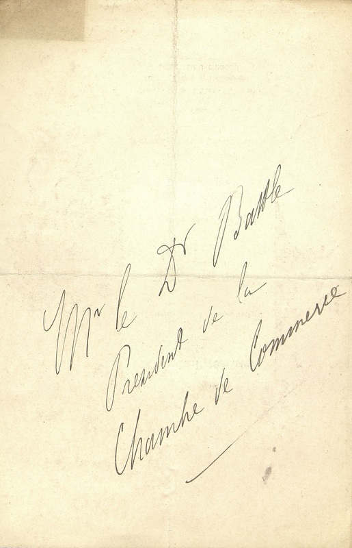 Menu illustré d'une vue d'hommes équipés, chasseurs alpins et alpinistes gravissant un sommet. Au dos une mention manuscrite. " Mr le Dr Battle Président de la Chambre de Commerce".