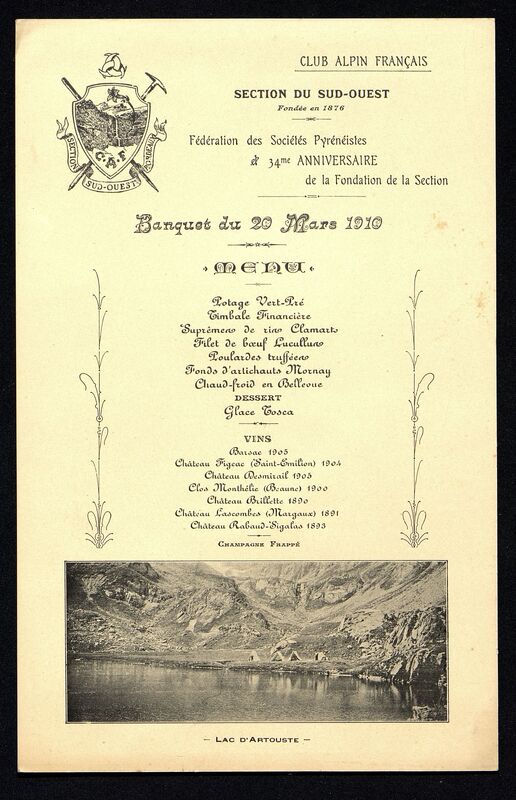 Menu illustré du Club Alpin Français, Fédération des Société Pyrénéistes et 34me anniversaire de la Fondation de la Section.
