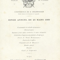 Dîner annuel du 23 mars 1909 avec une conférence. Au dos se trouve une reproduction photographique.
