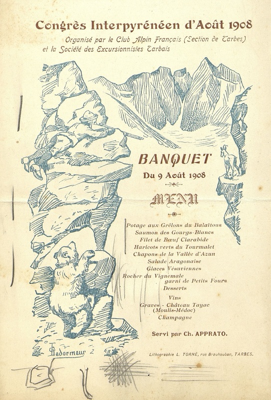 Menu organisé par le Club Alpin français (section de Tarbes) et la Société des excursionnistes Tarbais.