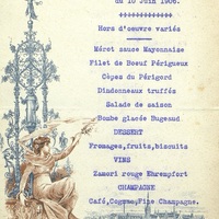 Menu publicitaire d'un banquet donné à Alger par la Société Amicale des périgourdins. Notes manuscrites.